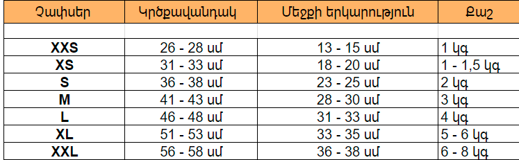 Գլխավոր Hafo Mall Կանաչ փուլովեր տաբատով (XXS - XL) Բոնուս 383 Առկա չէ Կանաչ փուլովեր տաբատով (XXS - XL) Կոդը՝ DD 568344 DD 568034 DD 568054 DD 568064 Քանակը՝ տուփ Քանակը՝ գրամ կիլոգրամ Քանակը՝ հատ Գինը՝12750դր․ Շագանակագույն փուլովեր տաբատով Շների և կատուների համար Կոդ Չափս Կրծքավանդակ լն․ Մեջքի երկ Շան քաշը DD 568344 XXS 26-28 սմ 13 - 15 սմ 1 կգ DD 568034 S 36-38 սմ 23 - 25 սմ 2 կգ DD 568054 L 46-48 սմ 31 - 33 սմ 4 կգ DD 568064 XL 51-53 սմ 33 - 35 սմ 5-6 կգ Doggy Dolly Միջազգային չափսեր XXS 1 կգ Chihuahua, Puppies XS 1 - 1,5 կգ Chihuahua,Yorkshire,Pomeranian S 2 կգ Yorkshire, Toy Poodle, Pomeranian, Chihuahua, Miniature Pinscher M 3 կգ Toy Poodle, Yorkshire, Maltese, Pomeranian L 4 կգ Shih Tzu, Pekingese, Poodle, Miniature Schnauzer XL 5 - 6 կգ Shih Tzu, Jack Russel, Pekingese, Miniature Schnauzer, Pug, Poodle, Westie XXL 6 - 8 կգ Cocker Spaniel, Miniature Dachshund, Pug, Westie, French Bulldog, Beagle Արտադրող ՝ Doggy Dolly Ավելացնել զամբյուղի մեջ Գնել հիմա Տեղեկությունների համար զանգահարել +374 93 577 177 Ապրանքը գնելուց առաջ զանգահարել +374 93 577 177 3000 դրամ և ավել գնումների դեպքում առաքումը Երևանի տարածքում անվճար է: Նմանատիպ ապրանքներ «VIP» վարդագույն կոմբինեզոն (S) 17300 Signature կոմբինեզոն (չորսոտնանի) XXS, XS 11250 Գծավոր Կոմբինեզոն (վարդագույն) S 11350 Շագանակագույն փուլովեր տաբատով (XXS- XXL) 13200